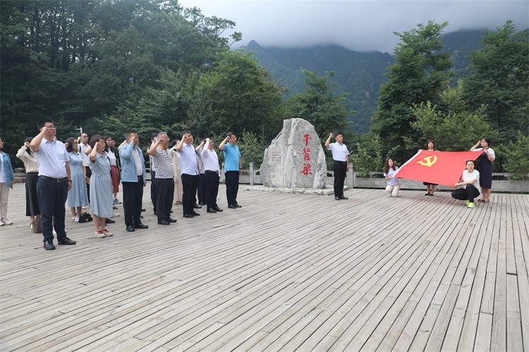 下午,与会代表前往牛背梁党建培训基地开展“沿着总书记足迹看变化、悟思想”实践研学活动。首先大家一起接受了题为“踏着总书记的足迹 重温总书记讲话 感悟国之大者”的党课教育,对“国之大者”有了较为清晰的认识。随后,大家在讲解员的带领下,沿着总书记足迹,实地感受绿水青山给当地带来的变化,更加深刻领悟“国之大者”的内涵和实质。行程最后,在月亮垭,面对牛背梁主峰,全体党员举行了重温入党誓词的仪式。